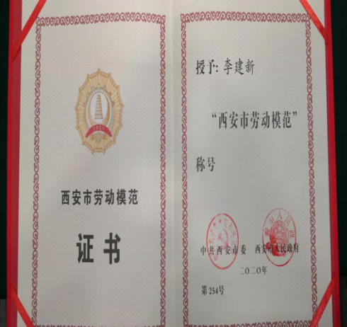 12月23日,由西安市委、市政府舉辦的2020年西安市勞動模范表彰大會在西安國際會展中心隆重舉行。我公司李建新同志榮獲“西安市勞動模范”光榮稱號。
